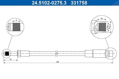 Der Ate Bremsschlauch [Hersteller-Nr. 24.5102-0275.3] zeichnet sich durch eine Reihe von technischen Details und Vorteilen aus, die ihn zu einer erstklassigen Wahl für Ihr Fahrzeug machen: