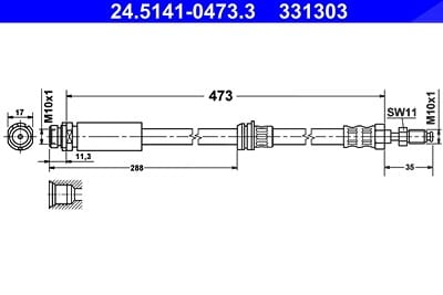 Hier finden Sie eine detaillierte Übersicht über die technischen Spezifikationen des ATE Bremsschlauchs 24.5141-0473.3:
