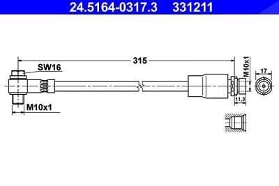 Hier finden Sie eine detaillierte Übersicht über die technischen Spezifikationen des ATE Bremsschlauchs 24.5164-0317.3: